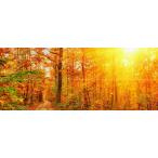 絵画風 壁紙ポスター (はがせるシール式) 緑と紅葉の森林浴 森 森林 秋の陽射し 癒し キャラクロ KYO-102P1(パノラマ版 1440mm×576mm)<日本製>