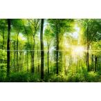 絵画風 壁紙ポスター (はがせるシール式) 森林 パノラマ 森林浴 日光浴 陽射し 太陽 緑の森 目の保養 キャラクロ SNR-101S1(1152mm×576mm)<日本製>