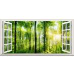 絵画風 壁紙ポスター (はがせるシール式) -窓の景色- 森林 森林浴 日光浴 陽射し 太陽 眩しい 緑の森の木々 癒し 【窓仕様/トリックアート】 キャラクロ SNR-030MA1 (A1版 830mm×585mm) <日本製> ウォールステッカー お風呂ポスター