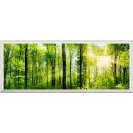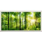 絵画風 壁紙ポスター (はがせるシール式) 【特大上下2枚仕様】森林 森林浴 陽射し 緑の森の木々 キャラクロ SNR-101L1W(パノラマL版 1843mm×576mm×2枚)