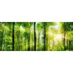 絵画風 壁紙ポスター (はがせるシール式) 【特大上下2枚仕様】森林 森林浴 陽射し 緑の森の木々 キャラクロ SNR-101X1W(パノラマX版 2210mm×576mm×2枚)