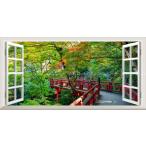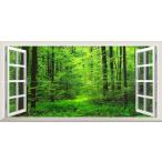 絵画風 壁紙ポスター (はがせるシール式) -窓の景色- 森林 森林浴 緑 木漏れ日 目の保養 気分転換 癒し 【窓仕様/トリックアート】 キャラクロ SNR-003MA2 (A2版 594mm×420mm) <日本製> ウォールステッカー お風呂ポスター