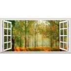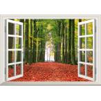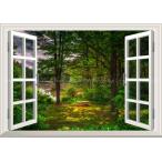 絵画風 壁紙ポスター (はがせるシール式) -窓の景色- 並木道 森林 森林浴 緑 目の保養 気分転換 癒し 【窓仕様/トリックアート】 キャラクロ SNR-004MA1 (A1版 830mm×585mm) <日本製> ウォールステッカー お風呂ポスター