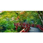 絵画風 壁紙ポスター (はがせるシール式) 森 お宮 日本庭園 森林 森林浴 緑 紅葉 黄葉 パノラマ キャラクロ SNR-119S1(1152mm×576mm)<日本製>