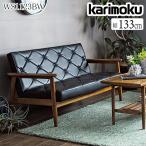 カリモク家具 WS1123BW 長椅子 幅133cm ブナ材 合成皮革 日本製 木製 天然木 正規品 karimoku アームソファ ソファー 2人掛け レトロ 木肘 人気 ブラック 黒