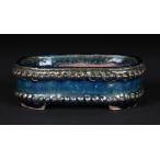 盆栽鉢 植木鉢 「東福寺瑠璃釉窯変鋲打長方鉢」 初代 平安東福寺 盆器 作家鉢 3号 9cm 青 紺 ネイビー 雑木 小品 ミニ盆栽に最適 現品限り