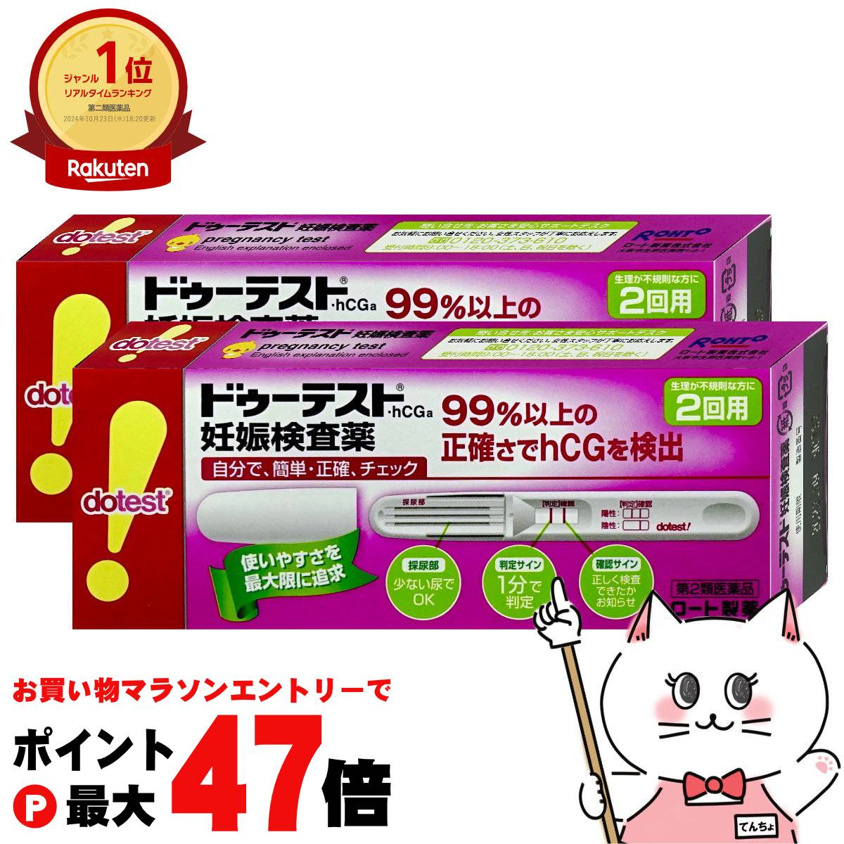 ドゥーテスト・hCGa 2回用 ロート製薬 妊娠検査薬 ドゥテスト【第2類医薬品】