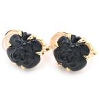 シャネル カメリアイヤリング K18YG オニキス ツバキ 椿 フラワーモチーフ 両耳用 クリップ式 イエローゴールド 地金約2.6g 中古 送料無料