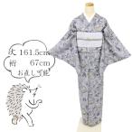 単衣 特選紬 型染小紋 花唐草雪輪に椿の花 Mサイズ 身丈161.5cm 裄丈67cm 普段着物 グレー 正絹着物 きもの 和装 レディ―ス KH4-25 中古 リサイクル着物