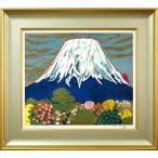 片岡球子 「 梅椿樹咲きそめし富士 」 リトグラフ 版画 版画 絵画 日本画 富士山 白富士 青富士 花 迫力 力強い インパクト 人気 送料無料