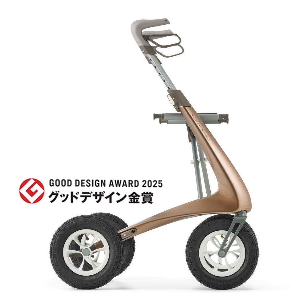byACRE(バイエーカー)カーボン・オーバーランド <ブラウンメタリック> 超軽量 6.7kg 全地形対応型 歩行器 デンマーク発 北欧デザインのおしゃれな四輪手押し車 大径エアタイヤ搭載 座れる 折りたたみ式 屋外用 高齢者 介護用品