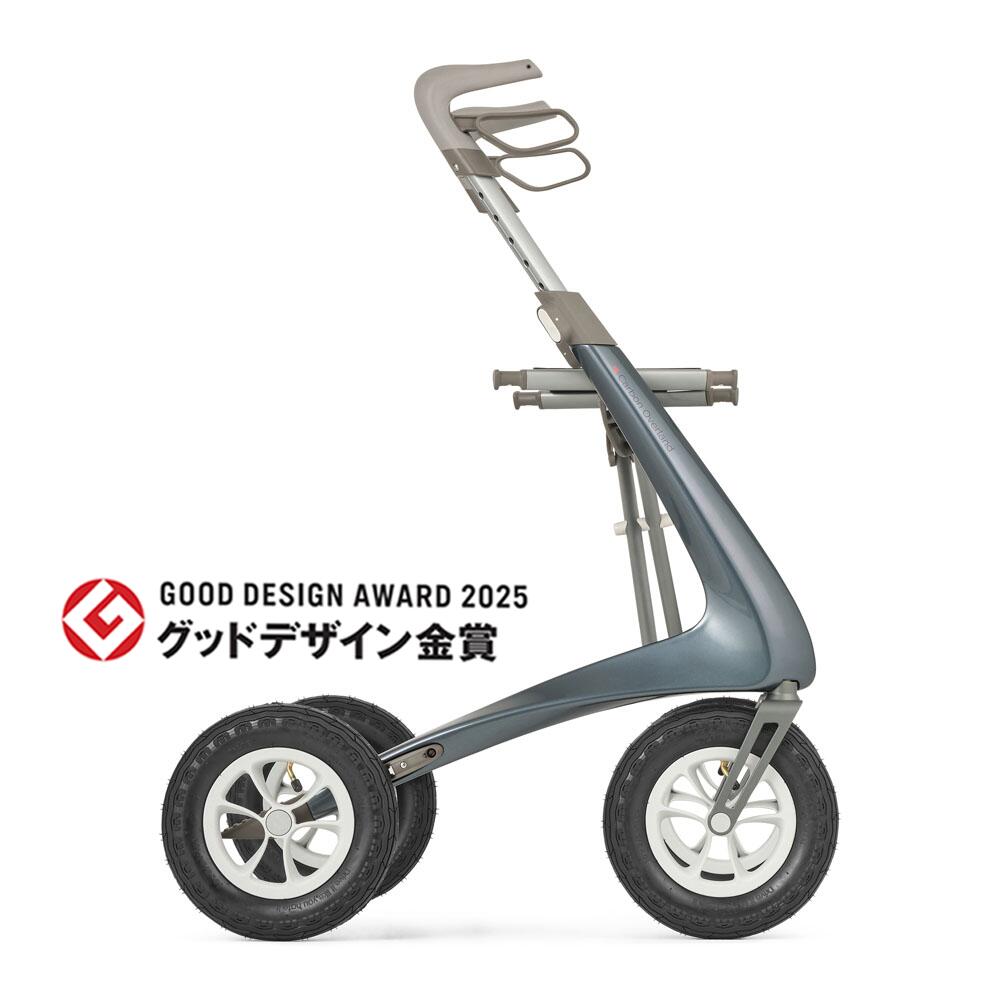 byACRE(バイエーカー)カーボン・オーバーランド <ミッドナイトブルーメタリック> 超軽量 6.7kg 全地形対応型 歩行器 デンマーク発 北欧デザインのおしゃれな四輪手押し車 大径エアタイヤ搭載 座れる 折りたたみ式 屋外用 高齢者 介護用品