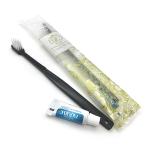 歯ブラシ 24穴先細タイプ 歯磨き粉付き(3g) (柄あり:2000本, ブラック)