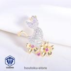 ブローチ レディース アクセサリー ピンバッチ ネコ 猫 花 ラインストーン おしゃれ かわいい ギフト プレゼント 母の日 記念日 誕生日 ホワイト