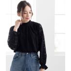 tシャツ 総レース素材シャーリング使いブラウス レディース