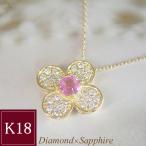 【限定3点】ネックレス K18 18金 ピンクサファイア 天然 ダイヤモンド 花 フラワー 2営業日前後の発送予定