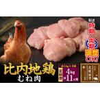 【ふるさと納税】《定期便11ヶ月》 比内地鶏 むね肉 4kg(1kg×4袋)×11回 計44kg 時期選べる お届け周期調整可能 11か月 11ヵ月 11カ月 11ケ月 44キロ 国産 冷凍 鶏肉 鳥肉 とり肉 ムネ肉