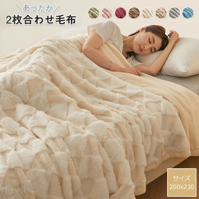 毛布 2枚合わせ毛布 ブランケット キング もうふ 冬 あったか 吸湿発熱 掛け毛布 ふわふわ 柔らかく肌触り マイクロファイバー 防寒 暖かい おしゃれ 北欧 洗える 寒さ対策 秋 冬用 寝具 200×230cm