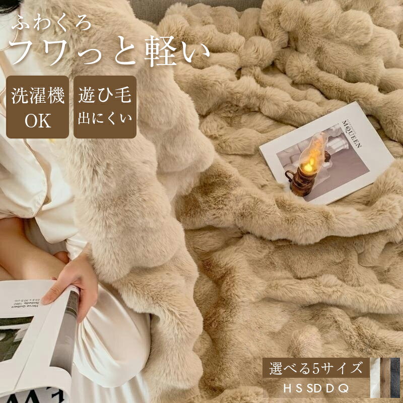 【12/1限定!クーポンで11%OFF】【レビューでミニバッグ】もこもこ毛布 LUXZA ラグザ ラビットファー シングル セミダブル ダブル クイーン 冬 ひざ掛け ハーフ ブランケット モコモコ かわいい とろふわ もこもこ 毛布 ふわとろ フランネル 2枚合わせ 洗える