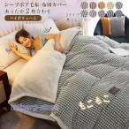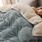 毛布布団 シープボア 掛け布団 ダブル 2枚合わせ 中綿入り ボア フランネル 毛布ふとん 冬 無地 厚手 ふわふわ あたたか おしゃれ 北欧 布団 ふとん 180X220cm