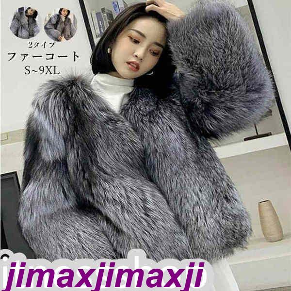 新生活 2021冬ファーコート レディース 毛皮コート フォックス フェイクファー ボリュームファー トレンド 上着 暖かい きれいめ アウター おしゃれ 高級素材 レディースファッション