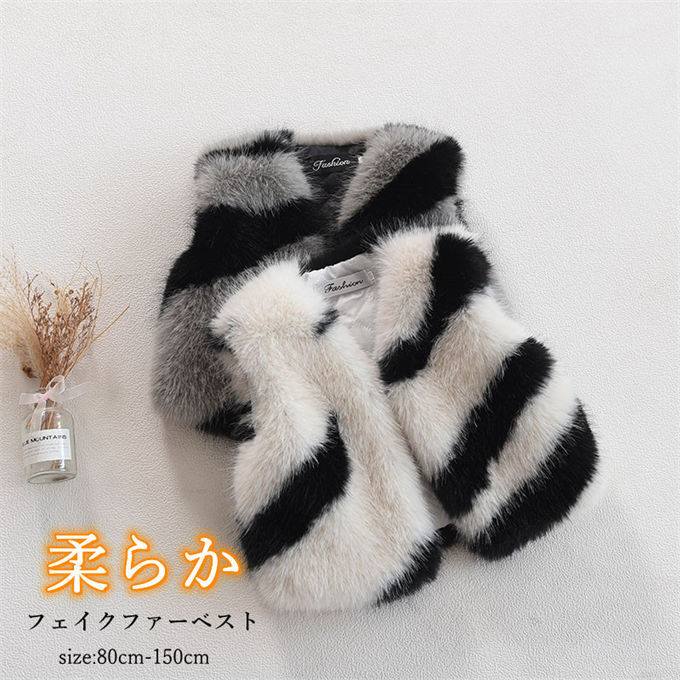毛皮ベスト キッズファーベスト 子供ファーベスト ファーベスト ファーコート ファーベスト子供用 幼児 ベビー ボアジャケット 毛皮 フォックス ベスト 袖なし あったかファー 可愛い おしゃれ 秋 冬 アウトドア 通園 通学 ギフト プレゼント