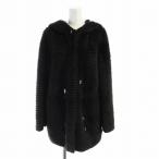 ロエベ LOEWE ミンクファー フード コート 毛皮 ミドル ドローコード カシミヤ 総裏地 36 S 黒 ブラック ■GY18 /MQ レディース