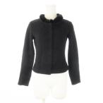 ルネ Rene カーディガン ニット クルーネック 丸首 長袖 ファー付き ミンクファー 毛皮 カシミヤ 小さいサイズ 34 XS 黒