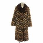 ノーブランド ファーコート アウター 毛皮 ミンク ロング ヘリンボーン 総柄 茶色 ブラウン /XZ ■GY18 レディース