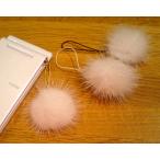 ミンク ファー ストラップ 白・ベージュ 毛皮 携帯ストラップ