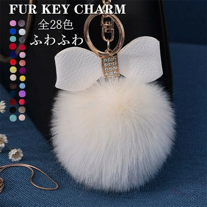 ファーチャーム ウサギの毛皮 キーホルダー バッグチャーム 大人 金具 ファー 毛皮 動物 ラビット ミニチャーム 冬 あったか もこもこ かわいい ふわふわ ポンポン ボンボン ストラップ ダイヤ付き キラキラ リボン クリスマス