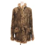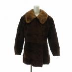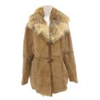 ノーブランド ラムファーコート ジャケット 襟フォックス 毛皮 スエード ミックス ショート 40 茶 ブラウン /FF ■GY18 レディース