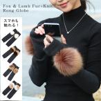 ロンググローブ フィンガーレス フォックスファー ラムファー 毛皮 ぼんぼり付 ニット アームウォーマー リストウォーマー 手袋 ロング 指なし オシャレ