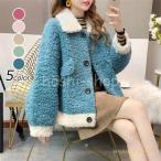 ラシャコート コート レデイース ラム毛 毛皮 秋冬40代ダブルコート 可愛い韓国風 配色 ロング丈 ダブルコートきれいめ長袖アウター カジュアルウエア 着痩せ