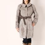毛皮/ファーコート/1点限り ベビーラム コート バイカラー ベルト付き 着丈85cm グレージュ / レディース 秋冬 毛皮コート