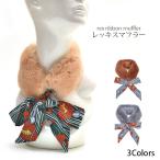 (特価) レッキス リボン付 ファー マフラー リボンコーデ ビッグリボン 毛皮 リアルファー カラー ストール ショール レディース No.306651 (返品交換不可)【 ネコポス 対応 】