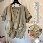 ブラウス レディース ラウンドネック 後ろリボン 半袖 ゆったり エレガント オシャレ オフィス きれいめ トップス 夏物 無地 きれい