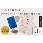 ふるさと納税 服 北海道 士別市 F7002 北海道士別 羊毛使用 サフォーク 手つむぎニット 5種セット (1組) カーディガン ストール 手袋 帽子 靴下 毛糸 羊 ウー…