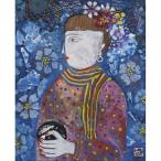 香野ルミ子 「花の髪飾り」 日本画3号 額付き