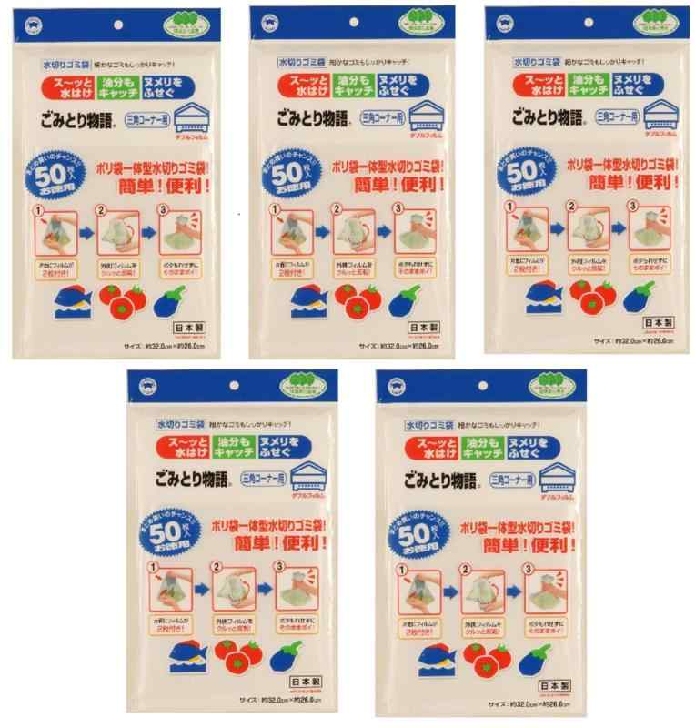 ボンスター 水切りネット ごみとり物語 三角コーナー用 ダブルフィルム 50枚入 × 5個組 (250枚) 容量約2.3リットル ダブルフィルムで漏れずに捨てられる ポリ袋一体型 ヌをふせぐ 油分も