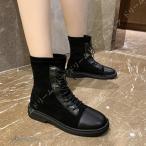 ブーツ レディース カジュアルシューズ 切り替え 編み上げブーツ ワークブーツ 安全靴 柔らかい アウトドア 歩きやすい 防滑 スエード 黒 フラット 厚底