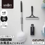 アズマ公式 sm@rt 磁石収納 浴室清掃4点セット ダークグレー ロング伸縮柄(浴槽洗いFL、浴槽洗いスペア、水切りワイパー、床洗い)