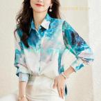 シフォンブラウス 水墨画風 シフォン 長袖 襟付き レディース トップス