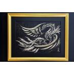 ふるさと納税 雑貨・日用品 絵画 岐阜県 本巣市 現代水墨画家 絵師白道「丙午 龍馬」黒ゴールド|絵画 アート インテリア 手描き 一筆 龍 日本画 現代アート …