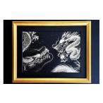 【ふるさと納税】現代水墨画家 絵師白道 作「一筆金双龍」|絵画 アート インテリア 手描き 一筆 龍 日本画 現代アート ハンドメイド作品 水墨画 かっこいい 作品 縁起 風水 [0622] 220000円