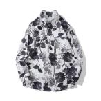 柄シャツ 花柄 水墨画風 白黒 モノクロ ローズ バラ デジタル プリント 花 フラワー 長袖 長袖シャツ オーバーサイズ 衣装 韓国 大きいサイズ 個性的 秋服 冬服