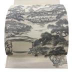 袋帯 秀品 落款あり 水墨画螺鈿袋帯 二条城 螺鈿 金彩 クリーム お太鼓柄 正絹 中古
