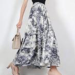 レディース スカート マキシ丈スカート ロングスカート フレアスカート Aライン トワルドジュイ 水墨画 総柄プリント ハイウエスト ウエストゴム