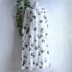 水墨画風花柄 ティアード ワンピース 白系 春 夏 秋 レディース ロング マキシ 上質 上品 50代 60代 70代 新品 9752 ML