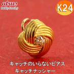 24金 ピアス 純金 イエローダイヤモンド 片耳ピアス 水引 キャッチのいらないピアス イエローゴールドk18 18金 和風 キャッチナッシャー 送料無料